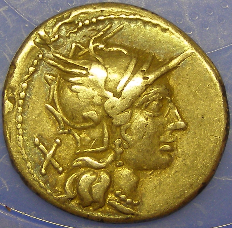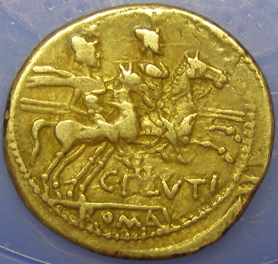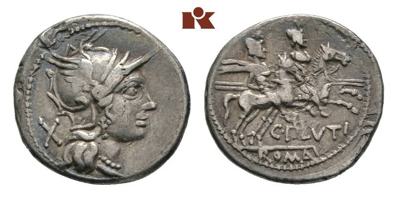 @stevex6 Great example of a flip-over double strike. The reverse looks really interesting. Roman Republican Denarius, 121 BC Mint - Crawford says Rome; Grueber says Central Italy; Sydenham says Rome and other Issued by C.PLVTI, Caius Plutius Title of issuer moneyer Weight 3.92g, this coin I found 38 examples (before I stopped looking). It is interesting how close the weights of this issue. Weight and diameter stats are: Weight - max 3.94 Weight - min 3.24 Weight - avg 3.82 Weight - st dev 0.130 Diameter - max 19.2 Diameter - min 18.3 Diameter - max 19.9 Diameter - min 17.0 Diameter - avg 18.1 Diameter - st dev 0.72 Cr 278 / 1 BMCRR Itly 454 - 460 Sear: 153 Bab Plutia 1 CRR 410 / 414 based on helmet style RBW 1101 NMWar 451 451 - 455 Albert 1038 Grade gVF Centering well centered Strike good strike, Flip-over double strike Flan flaws double strike Style Sydenham says that those with helmet style E3 and other characteristics of the mint in Rome are rare -> #410. He says #414 has helmet style F1. I could not tell the difference. Crawford and Sear do not differentiate. Patination light toning Damage none Obverse Helmeted head of Roma R, behind X Reverse Dioscuri charging R, holding spears, below C.PLUTI, on partial tablet ROMA. Crawford notes the late use of this form of L. The seller's pic -