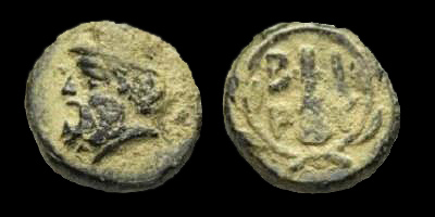 Nice one, I just have his tiny brother Troas, Birytis (300 B.C.) AE11 Birytis mint O: Head of Cabirus left wearing pileus. R: B-I/P-Y around club, all within laurel wreath. 8mm 1.1g SGCV II 4056 var, SNG Cop 250