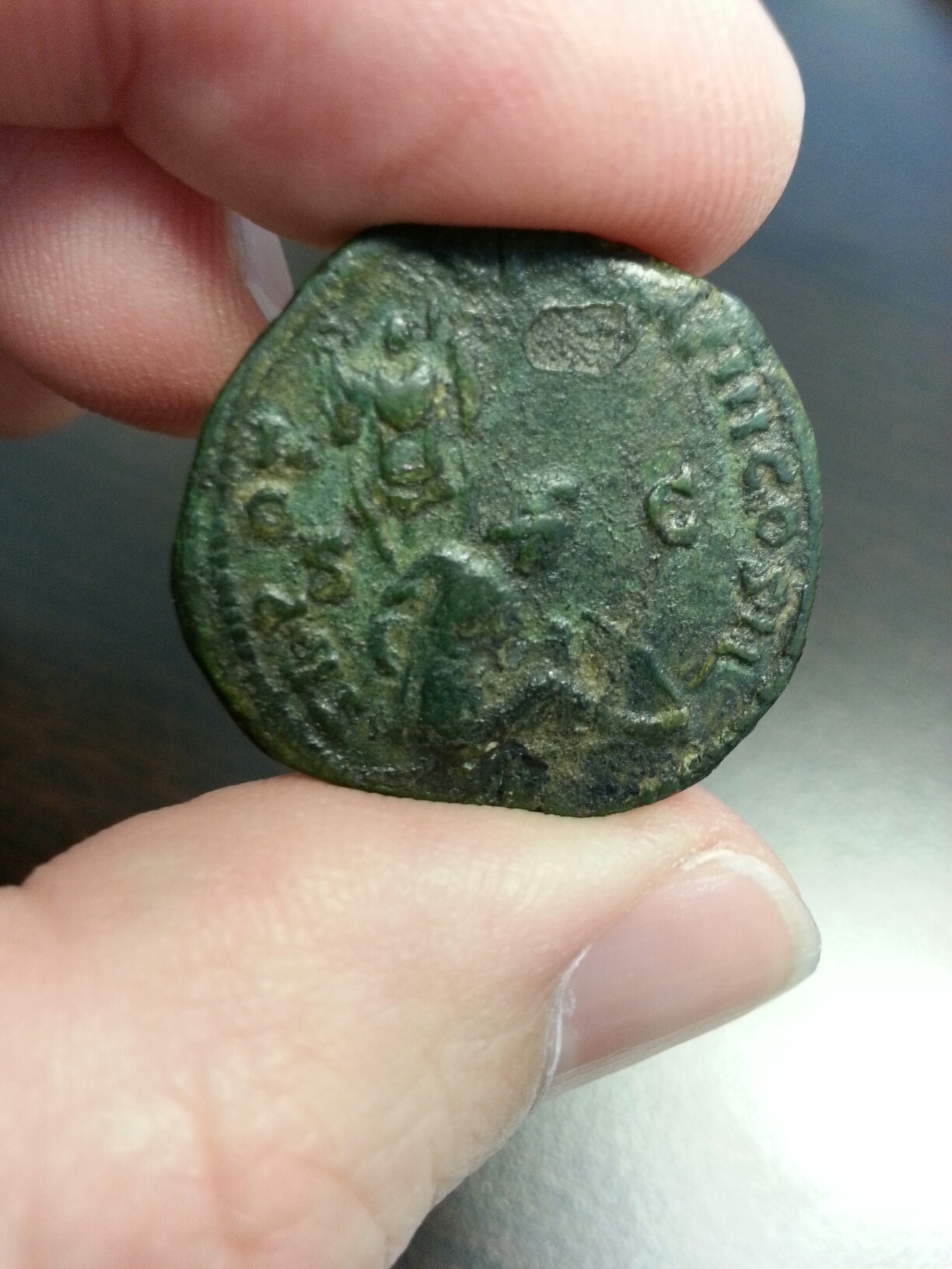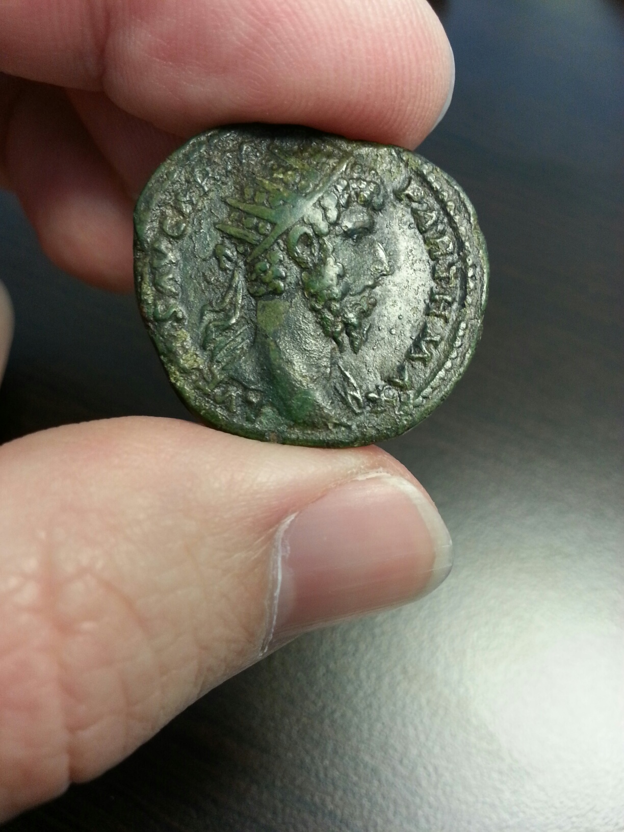 Here is the coin Doug refers to for which the Verus is the prototype. Septimius Severus denarius Obv:– IMP CAE L SEP SEV PERT AVG, Laureate head right Rev:– TR P IIII IMP II COS, Mars standing right, resting on spear and shield Minted in Alexandria, A.D. 194 References:– BMCRE -, RIC -, RSC -. cf. RIN (Rivista Italiana di Nvmismatica Vol. XCVI (1994/1995) 2.59g. 18.71mm. 0o Additional information courtesy of Curtis Clay:- "Bickford-Smith recorded three other specimens, of which I also have plaster casts: his own coll. (probably now in BM), Klosterneuburg, and U.S. private collection. On these the rev. legend apparently ends COS rather than COS II. This type was clearly struck in 194, when Septimius was TR P II and IMP III or IIII, so TR P IIII IMP II in the rev. legend is an error, the origin of which is obvious: the type is a rote copy of the identical type and legend on denarii of Lucius Verus of 164, Cohen 228-9. The titles apply to Lucius in 164, not Septimius in 194!"