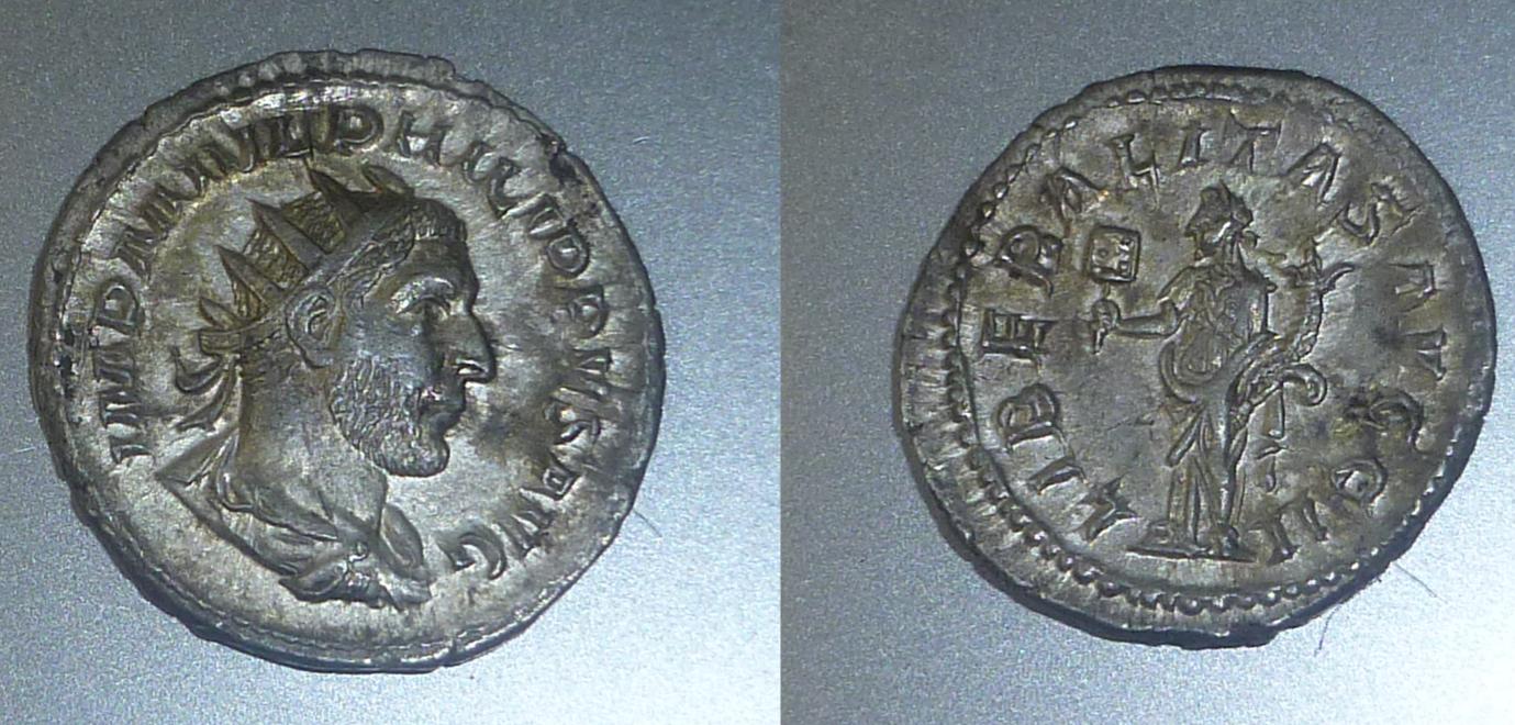 Its real. Flow lines around the legends are a good indicator. But sometimes you cant go by that. Philip I (244 - 249 A.D.) O: IMP M IVL PHILIPPVS AVG, Radiate, draped and cuirassed bust right, from behind. R: LIBERALITAS AVGG II, Liberalitas standing left, counting board in right, cornucopia in left. RIC IV 38b, RSC IV 87 SRCV III 8937