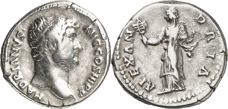 Hadrian Denarius Roma 134-38 AD Alexandria.