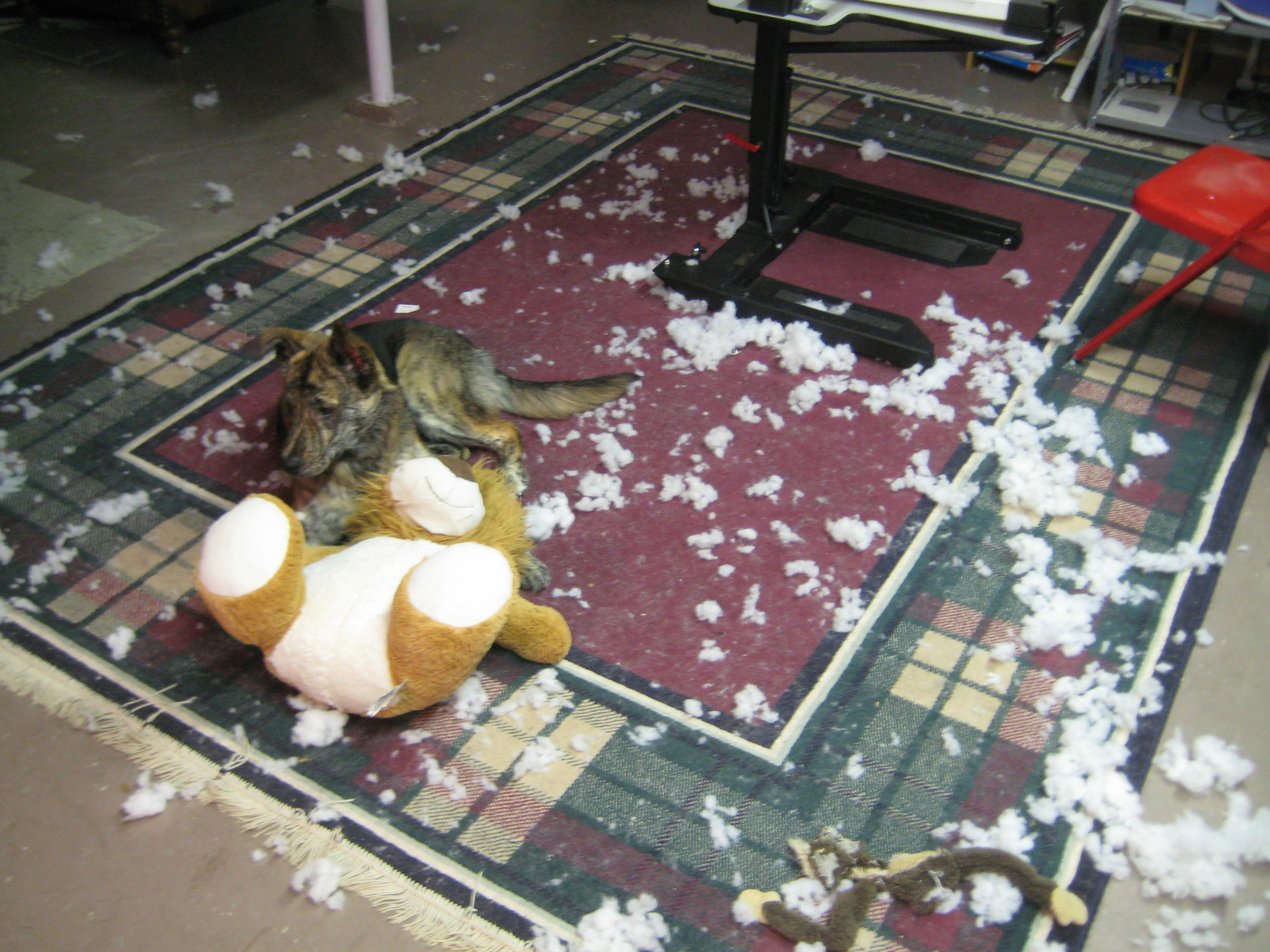 Coincidentally => Larry (the German Shepherd cross) discovered a large plastic tub full of chocolate-caramel cookies that my wife was going to give to a friend as a gift (yup, Larry found the hiding place, opened the plastic tub and ate all of the contents => last night, in the middle of the night, she started throwing-up and pooping ... she spent the night by herself, outside in the backyard)