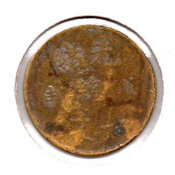 The Chinese copper coin is a "one cash" coin produced in 1908 at the Tianjin mint during the reign of the Guangxu Emperor. The inscription is written right-to-left although I am writing it below the way we write English left-to-right: Top row: 光緒 (Guangxu) meaning the Guangxu Emperor Middle row: 戊申 (1908) Bottom row: 一文 (one wen ("cash")) In the very center: 總 (zong) meaning "main" as in the "main mint" which was in Tianjin. The reverse side depicts a dragon. A similar coin may be seen at this Chinese website. Gary