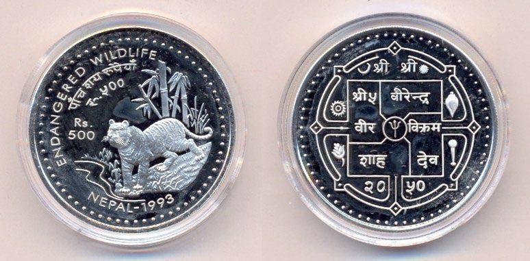 One of my favorites is the 1993 Endangered Wildlife series 500 rupee coin from Nepal featuring the Bengal tiger: