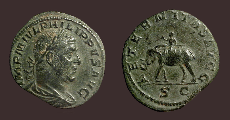 Thus a conclusion is reached that no one could have expected: Philip's Rome-mint coinage must have ended before he became TR P VI on 10 December 248 or 1 January 249, since the TR P V Mars type of his final issue (Issue 6) never advanced to TR P VI. I think the only likely explanation is that Philip I with his son and wife must have made an expedition to the East late in 248, perhaps to deal with usurpers; note the VIRTVS AVGG Emperors on horseback type of his Issue 6. While he was absent, before the end of 248, his successor Trajan Decius must have seized Rome and of course ended Philip's coinage from that mint. In 249 Philip was able to maintain himself in the East, while Decius ruled in Rome and the West, until Philip decided to march against the usurper and was defeated and slain by him in a battle at Beroea in Macedonia in c. September 249, shortly after his Alexandrian coinage registered the beginning of his seventh regnal year on 28 August 249.