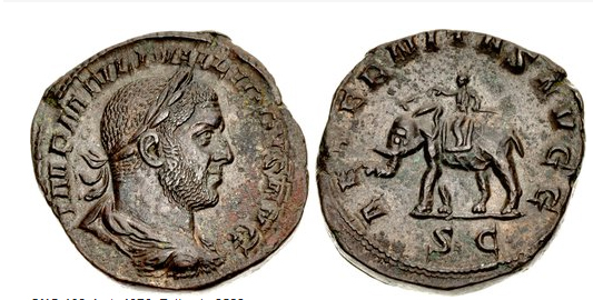 The AETERNITAS AVGG Elephant type, then, was introduced in January 248, at the same time as SAECVLVM NOVVM Temple and SAECVLARES AVGG Column. Since these two companion types obviously referred in advance to the Saecular Games that were to be celebrated in spring or summer 248, it seems likely that the Elephant type too was chosen with reference to those upcoming Saecular Games.