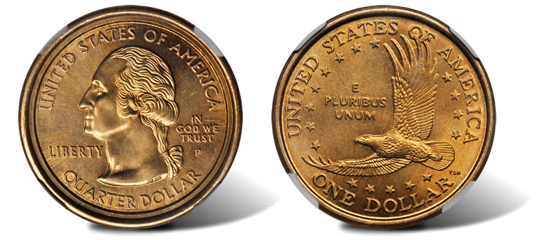 Quoting: An error coin, a Sacagawea dollar reverse muled with a Washington state quarter obverse, brought $155,250... though no date appears, the Philadelphia coin is from the year 2000. Numismatic Guaranty Corporation graded it MS-67. Question: How can they tell it's a Washington state from a partial obverse alone and how can the date be verified? I'm sure there's a simple answer, as my knowledge of modern coins is seriously lacking.