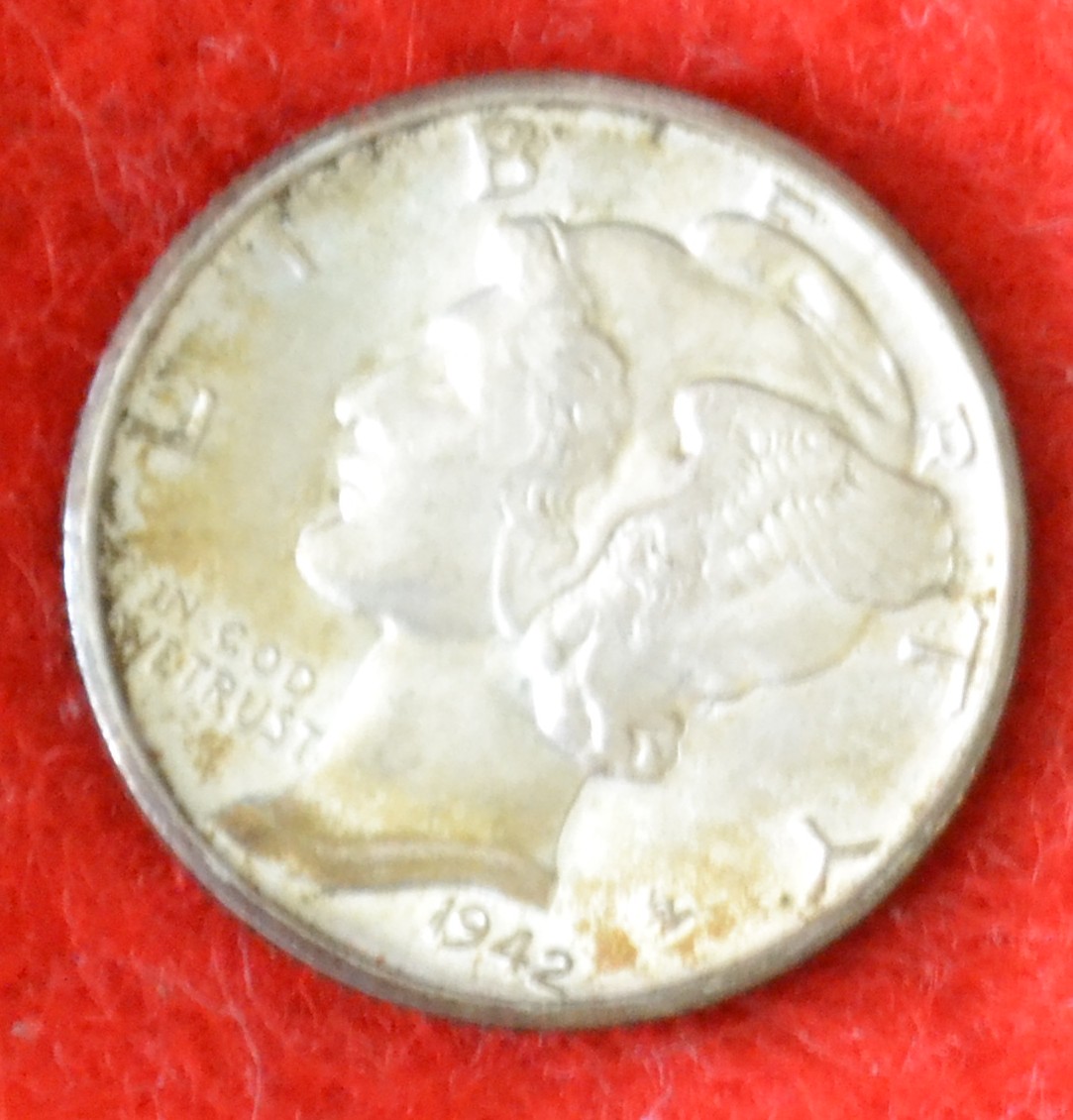 I posted a 1942 mercury in another thread that I thought was a beaut, This one is a 1942-D that I think is just as good. Nothing like a beautiful coin to sit and look at all day long.