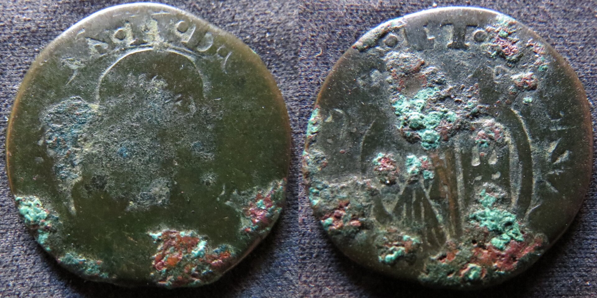 4.1 Naples 1 Tornese Filippo III 1607-1617 4.2 Republic of Naples 1648 3 Tornesi 4.3 Lucca Quattrino 1658 Otto 4.4 Naples Carlo V 1516-1556 (2 Cavalli?) Anyway, many hours of entertainment and/or work for $45, depending on one's point of view. Worth it to me, at least. The find of the bunch was the Republic of Naples coin. I would up giving it a way to a collector with a more particular interest in Italian states than I have. Thanks for all the help with IDing these.