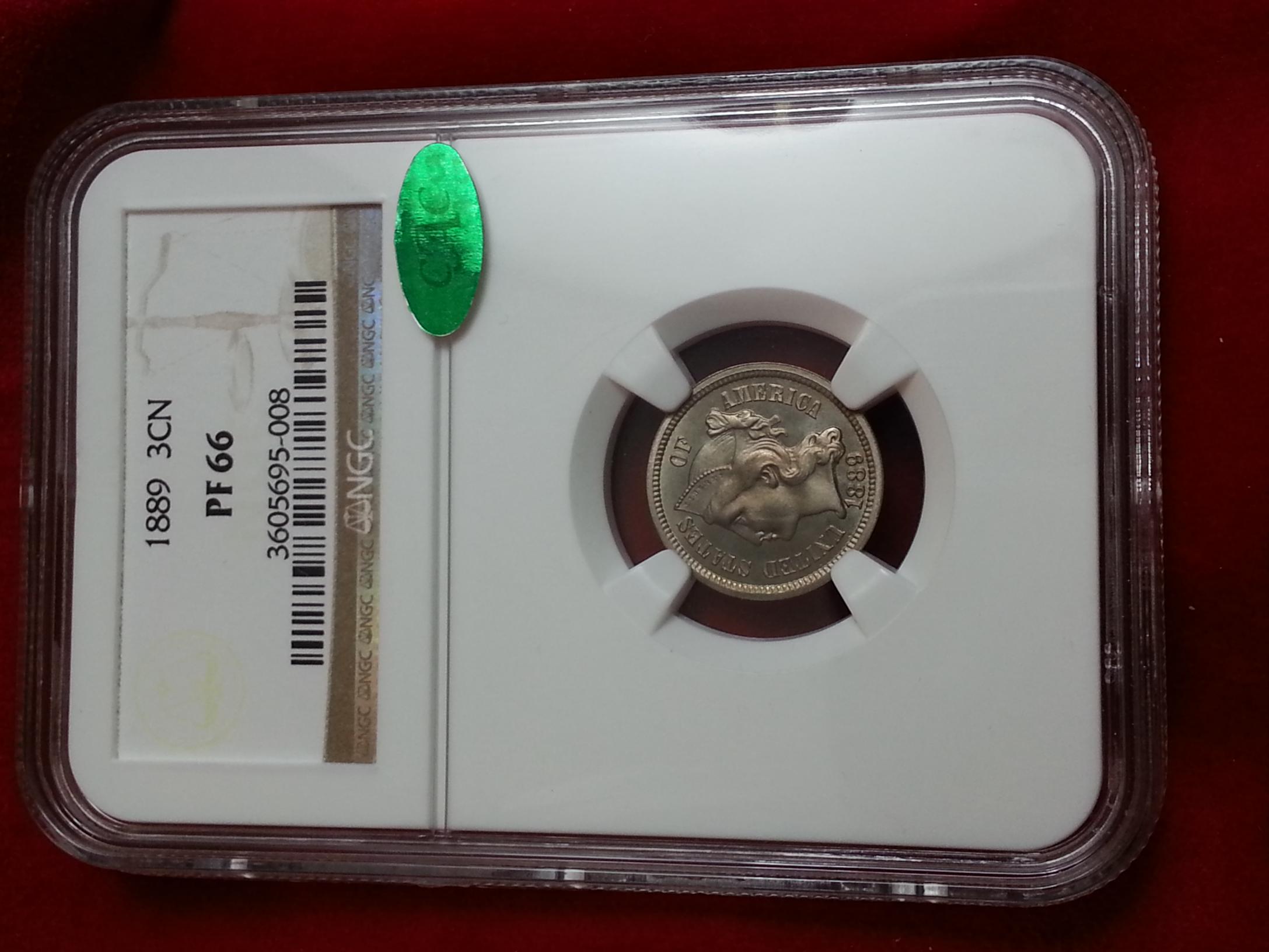 Also recently added to my collection is this 1889 Proof 3 cent Nickel NGC/CAC PF-66. The toning is delicate and beautiful. The toning on the reverse has the appearance of a gorgeous sunset.