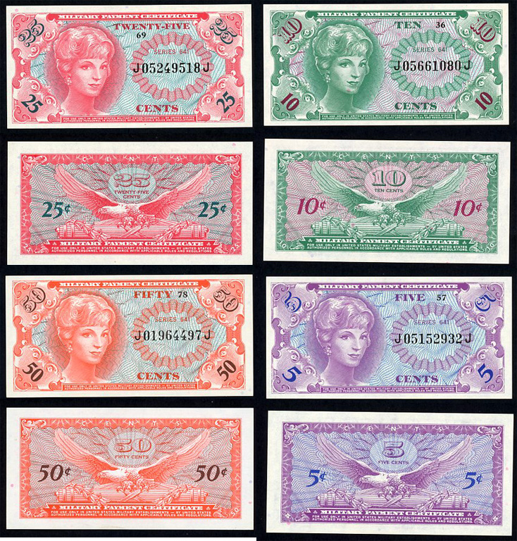 Just got this in the mail today and thought i would share it,s a Series 591 $10 in PMG 53EPQ, i have had one for years which i will post along with the new addition, i think You will find in comical that a guy that has been collecting for over 20 years has waited till now for a much upgrade truth is i have been concentrating on other sets and havent really done much PMG until now, but this set is very collectable and very rare especially the $5 with graded A/U examples in the $3,500 range, and uncirculated versions $5,000-$8,000, here,s a little more info on the Series. Series 591 Issued: May 26, 1961 Withdrawn: January 6, 1964 Printer: Forbes Lithograph Corporation, Boston Massachusetts Blocks: G-G,G- Countries in which used: Cyprus, Iceland, Japan, Korea Delivered Population: 5 Cents 7,392,000 ( considered low by most set standards) 10 Cents 8,400,000 (considered low by most set standards) 25 Cents 4,704,000 ( considered rare by most set standards) 50 Cents 3,696,000 ( considered very rare by most set standards) $1 Dollar 10,080,000 ( considered moderate by most set standards) $5 Dollar 2,400,000 ( considered ultra rare by most set standards) $10 Dollar 6,8000,000 ( considered rare by most set standards) as you can see by the populations, most in this series demand top dollars surprisingly so even the $1 note is extremely hard to find in graded unc. Condition, but for sure the $5 and $10.