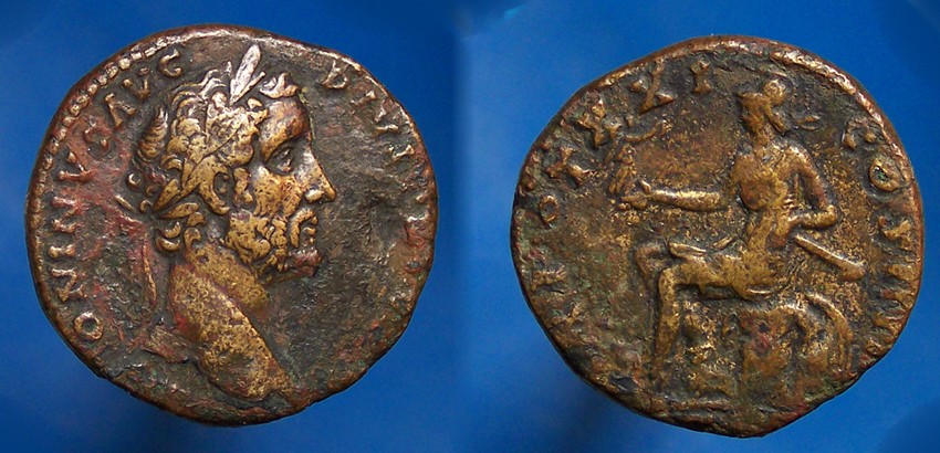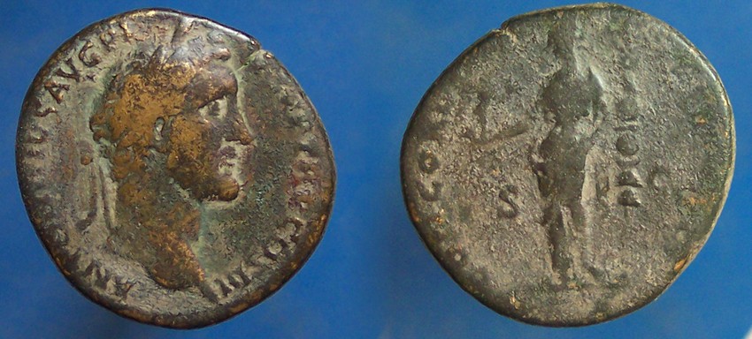 Thanks all. The dirt on it makes it look a little more flat in my photo than in hand. The only pic that showed relief was with lighting from the bottom and wasn't flattering. The rev. is a little darker, but it is pretty flat. Heres another A. Pius sestertius with a bit more relief on both sides. I think this was the cheaper coin of the 2 for me :hail: and the heaviest roman coin I have ( 27.7 g)