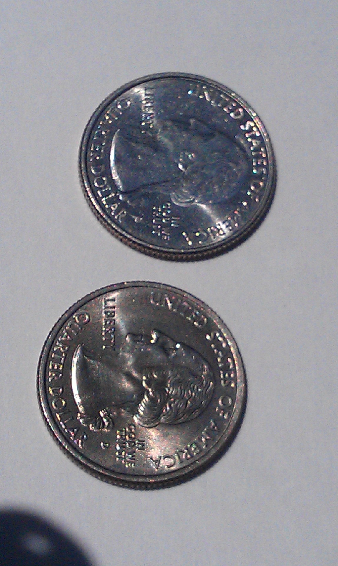 non cents has told you the truth. for some reason all of our newer clad coinage will tone to a deep copper or deep brass color if they are left exposed to the air or a piece of paper.I believe this is because of whatever that was in the wash the mint run them thru because if a new coin is washed with soapy water or carried in a pocket for a while it won't do this so bad. I have thousands of the state quarters and new nickels that looks almost exactly like solid copper and some are a deep brass color from natural toning.