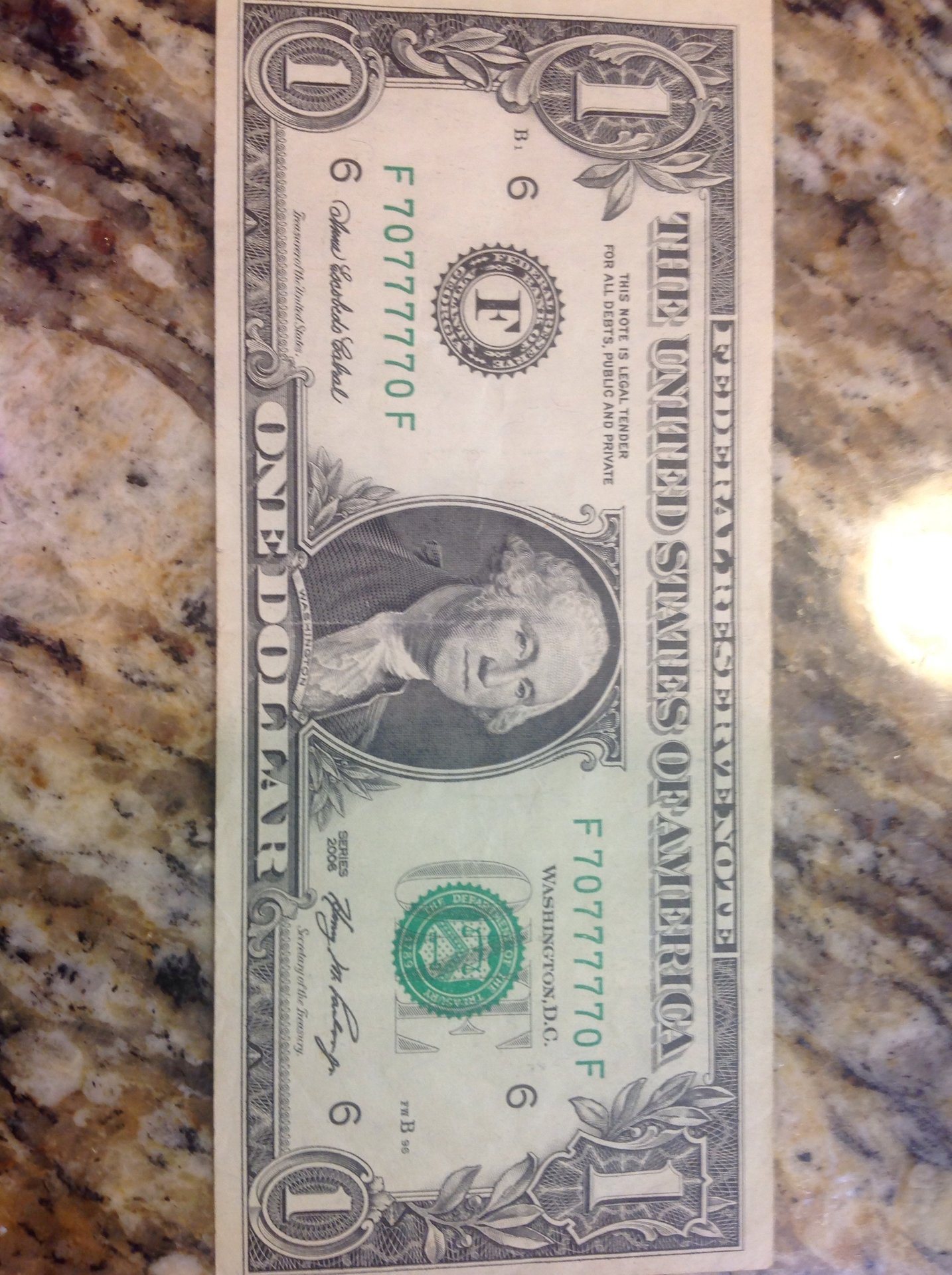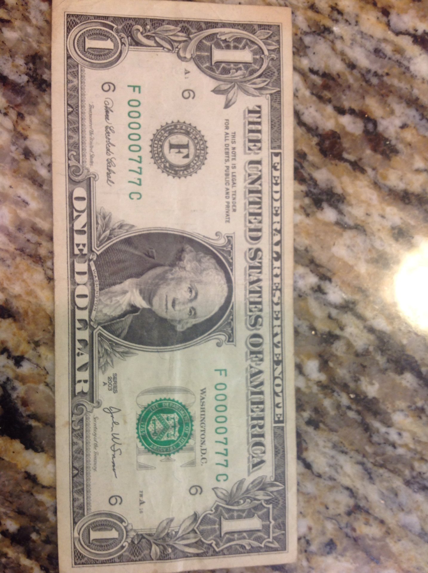 Actually the 777 note was the only one I got from circulation. My son went to a debate tournament and actually came back with money left. I was about to spend it on a Sonic drink before I realized what it was.