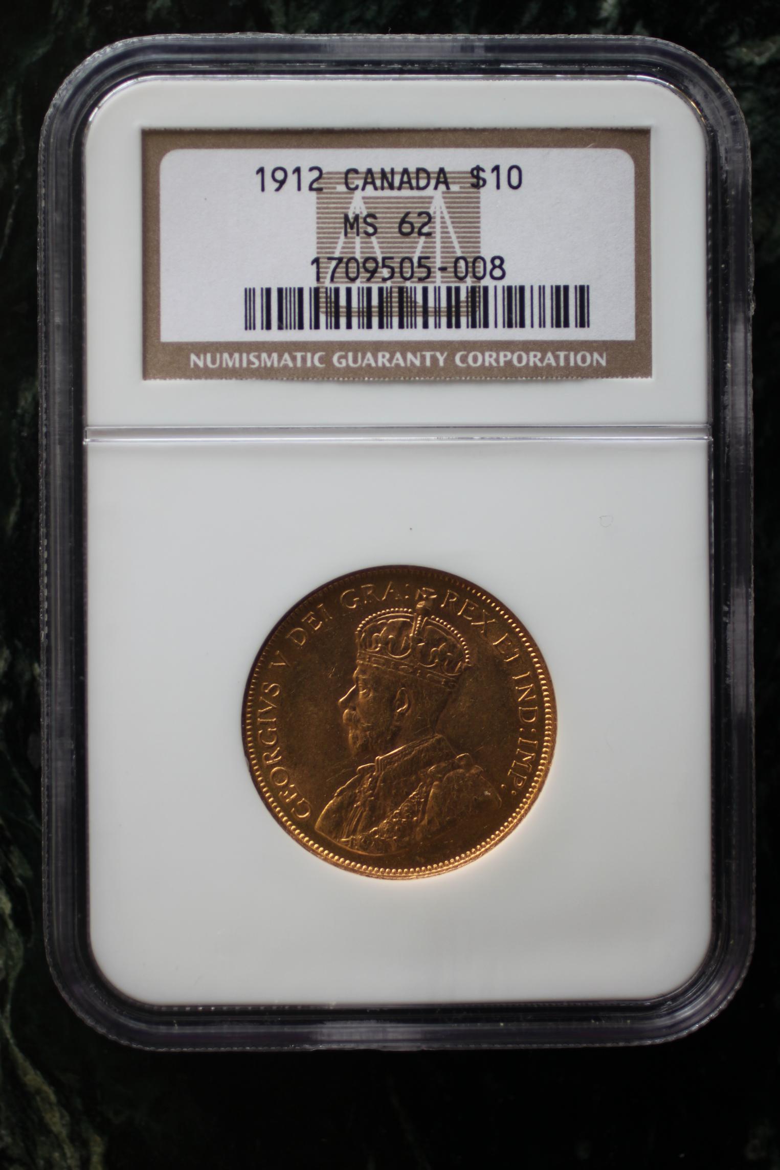At one time I had the complete 6 coin set. The 1914 gold $5 in AU58 with all the others in MS60 thru MS62. Sold off all except the 1912 gold $10 which was the nicest coin. All of them jump astronomically in price in any grade above MS62. I really should crack this one out and try again. Aside from a single bag mark in the field in front of the king's eye, the coins is choice BU.