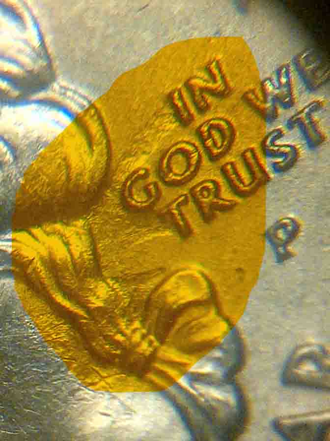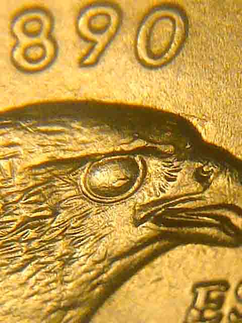 i see what could be grease/water marks and possible die chip on eagles eye..