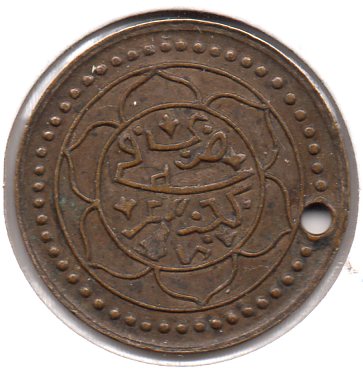 Similar designs on Kharubs from Tunisa and Budju from Algeria. However, it does not appear to have a date and has too good of a strike to match any illustrations I have seen. I tend to agree that it is an imitation.