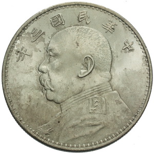 Have you checked the edge of the coin? There are several different edge variations. Also, you should weigh it to verify that the weight is correct and that the size is correct. 26.400 grams 0.8900 Silver 0.7554 oz 39mm Various types indicated by Krause for the R.O.C. 1 Dollar 1914 Year 3 of the Republic KM #329 - Vertical Reading KM #329.1 - Edge engrailed with circles KM #329.2 - Ornamented with alternating T's KM #329.3 - Plain KM #329.4 - Edge type not indicated, but there is a tiny circle in the bow which indicates a mint mark. (Mint unknown)