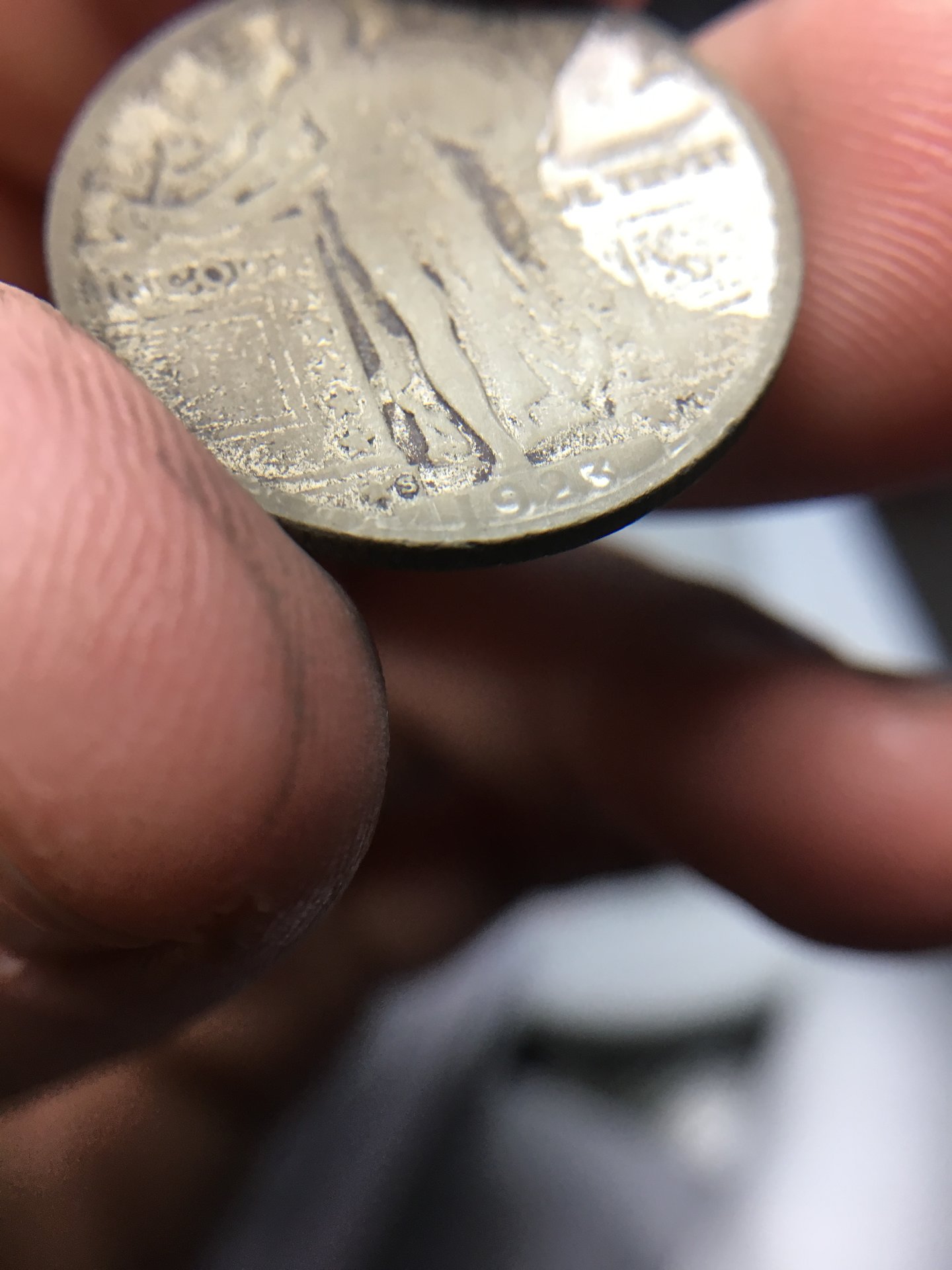 WELL - 24 hours in Hydrogen peroxide and vinegar DESTROYED the coin - HOWEVER - the date is now TOTALLY VISABLE 1923 AND MY HEART BREAKS AT HOW F'ED UP IT IS NOW