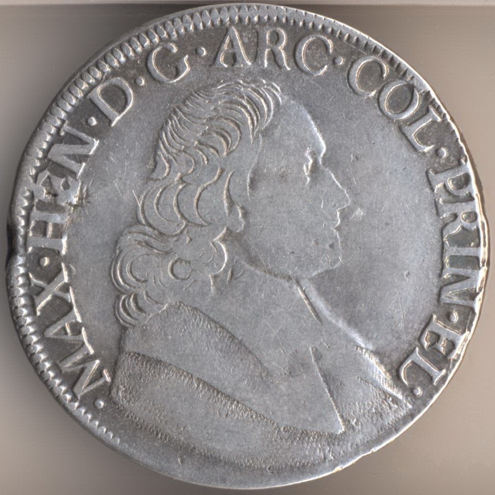 These little German coins do get around. Inscriptions look like: MAX HE DG ARCH COL and SRI PR ELE VTR B DVX Bavaria and the Electorate of Cologne, Maximilian Heinrich of Bavaria (1650-1688) Might be this one: Die Medaillen und Münzen des Gessammthauses Wittelsbach By Staatliche Münzsammlung München, Johann Peter Beierlein Published 1897 PAGE 186 Item 1299 Two Albus dated 63 (1663) This book is online.