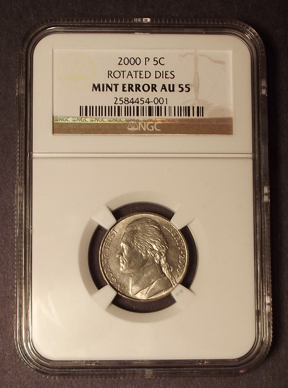 I finally got around to sending in the 2000P rotated die, and is it just me or did ngc just screw me? There's no degree of rotation, no direction of rotation, and the coin isn't straight in the holder. What the heck? I'm not very happy with the way they did this.
