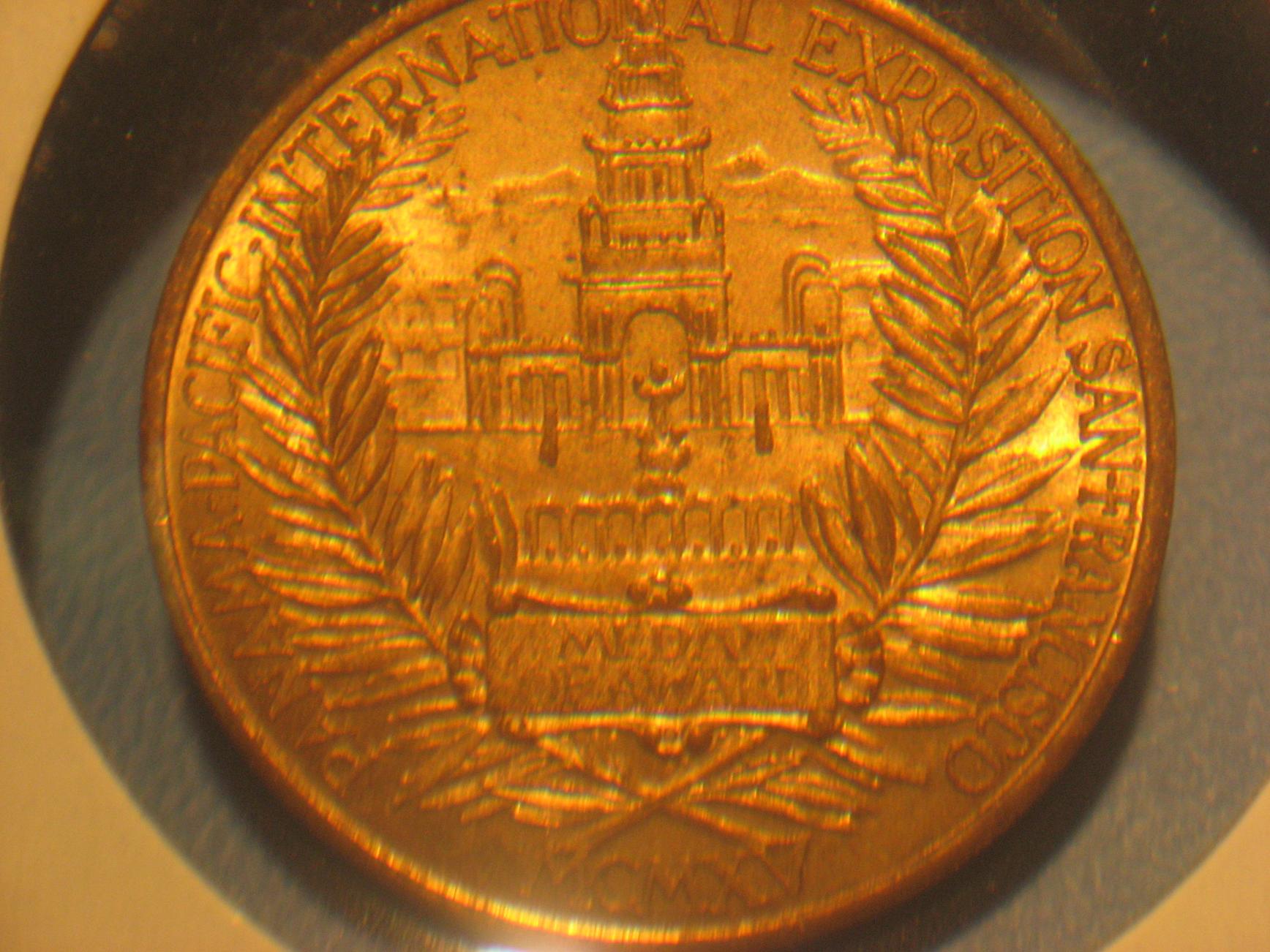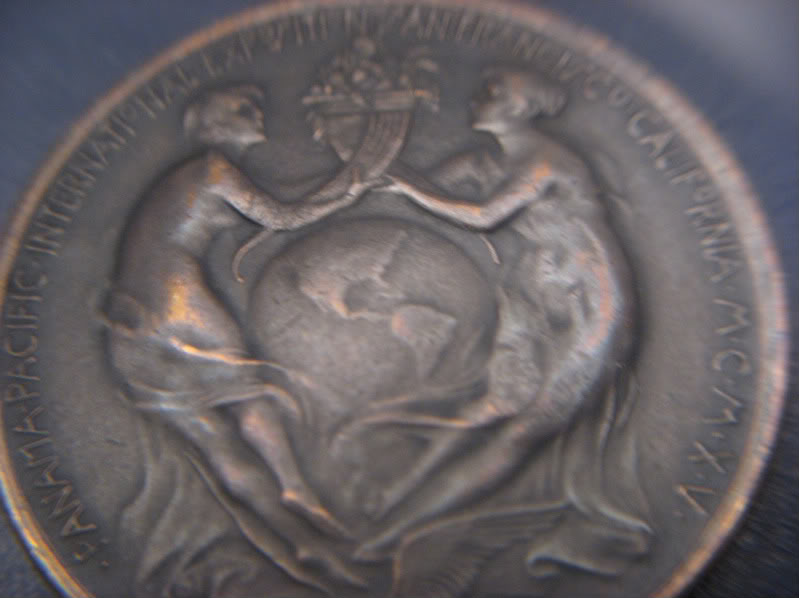 Here's another medal and I forget what they call this one. The PPIE was the first world's fair event in California and over a 7 month period they had 20,000,000 guests. That's a whole lotta people and it gave the city of San Francisco alot of revenue to help the city completely dig itself out of the debt that was accumulated from the Earthquake of 1906. Couple more medals and coins on the bay. http://www.ebay.com/sch/i.html?_odkw=panama+pacific+international+expo&_osacat=11116&_from=R40&_trksid=p2045573.m570.l1313.TR0.TRC0&_nkw=panama+pacific+international+exposition&_sacat=11116