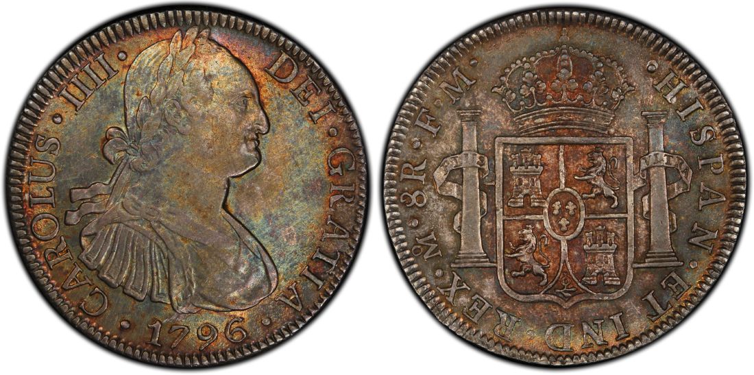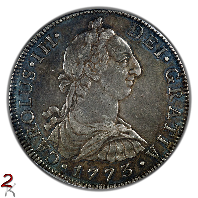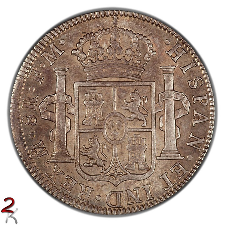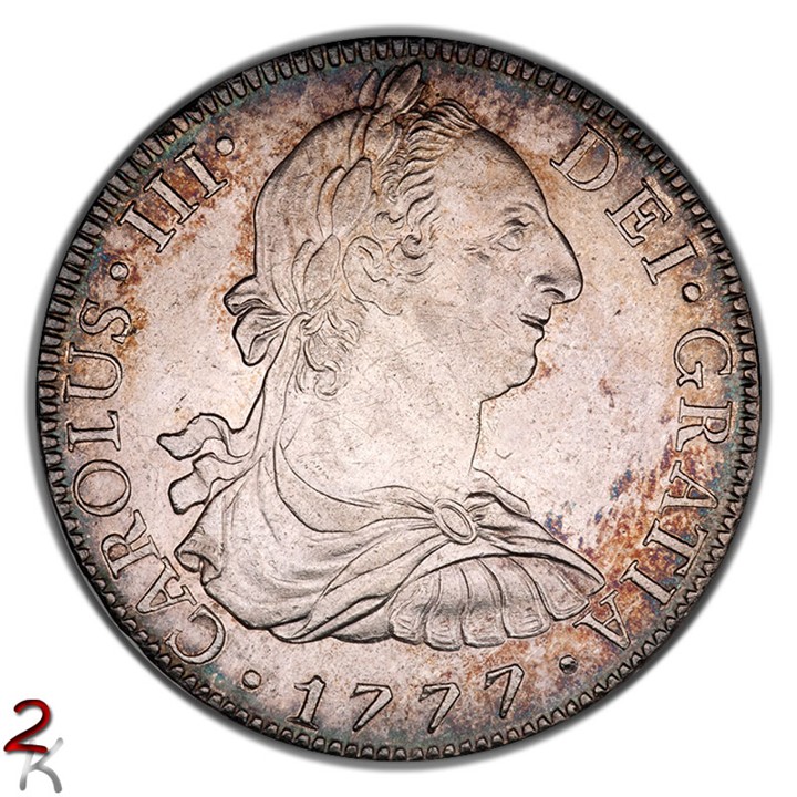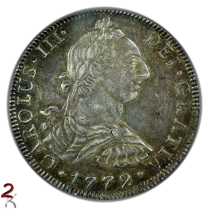 Here's another portrait example of Charles III 8 Reales from Mexico City. Pleasant color and luster. Scarcer of the two assayer combinations for that year. PCGS AU53.