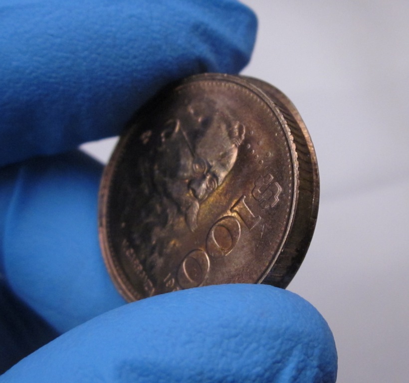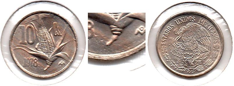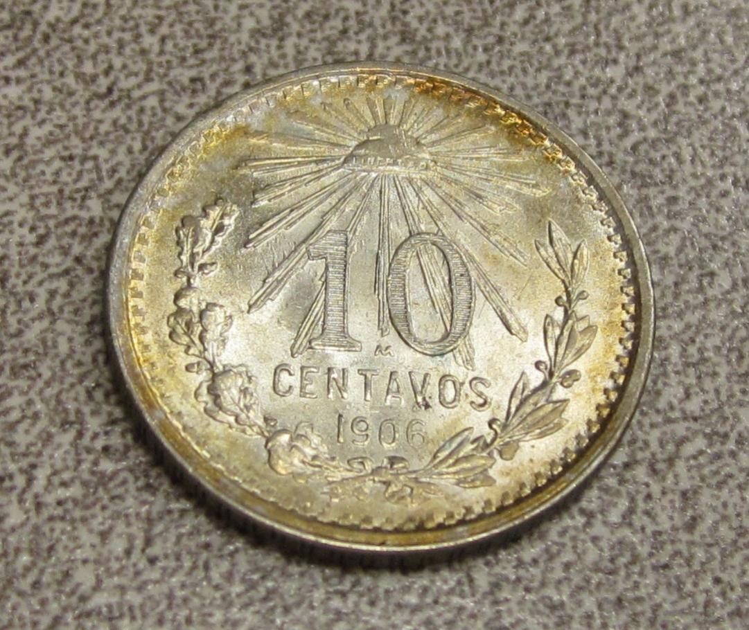 Here is a 1979 Peso where the reverse is struck though grease (mint debris). The 1906 10 centavo coin is attractively toned IMO.