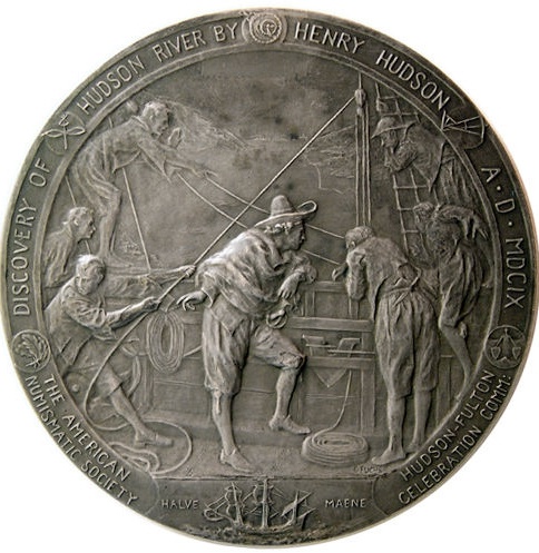 Don't know if this qualifies. It is from the 1902 Hudson-Fulton celebration. It is 102mm in diameter and one of my favorite medals.