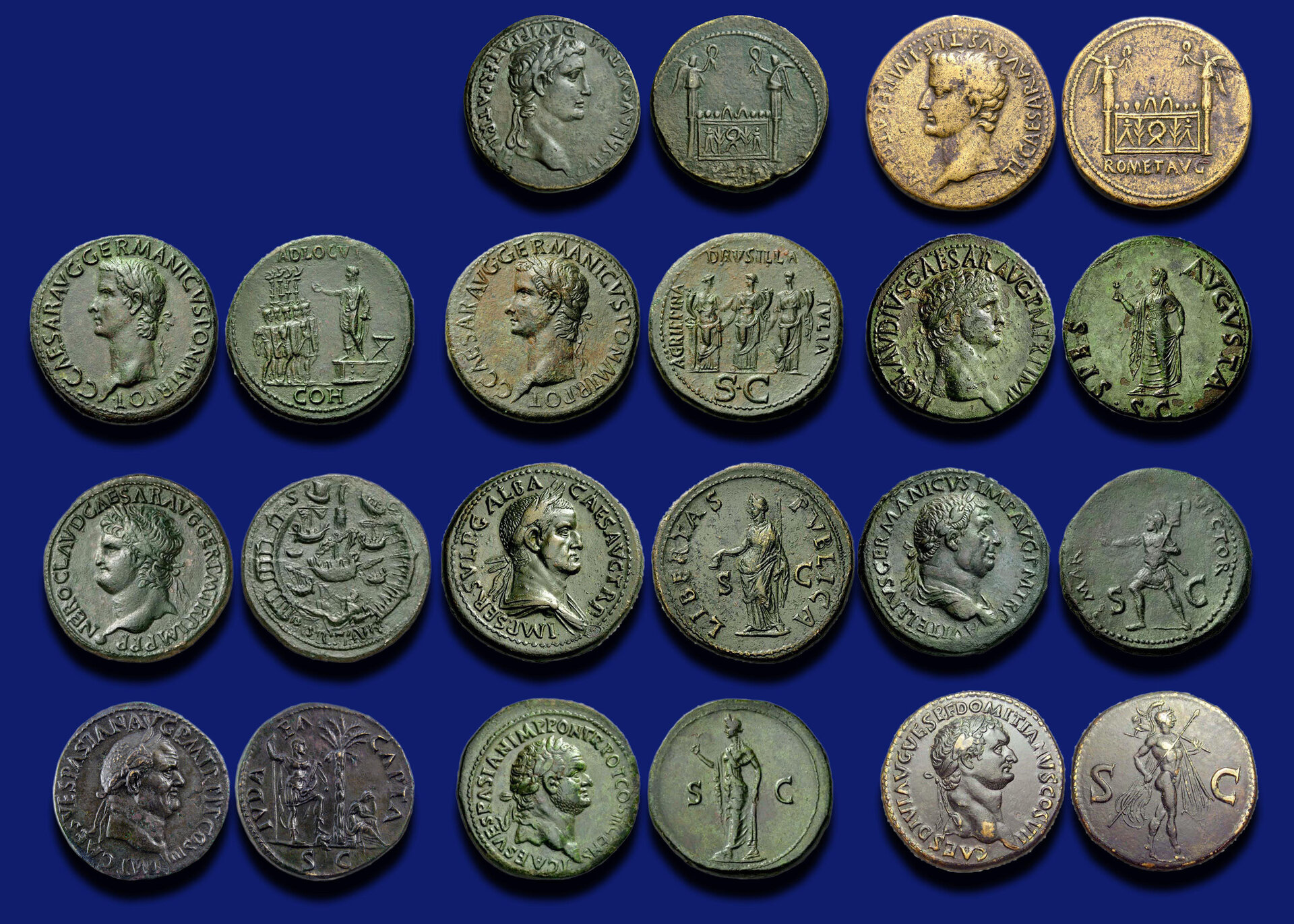 A large variety of different weight ‘Sestertius’ do go back to the Imperatorial period. The most beautiful large coins are often Bronze/leaded Bronze or Orichalcum. This metal triggers me, I citate a post about this metal: In several ancient writings (especially in Plato’s Critias) a precious metal called orichalcum – second only to gold in value – is mentioned several times. The name derives from Greek and means “mountain copper” or “mountain metal.” Allegedly, the lost city of Atlantis was built mostly of orichalcum – which gave the city a ruddy or bronze-ish appearance. But what exactly is orichalcum? Ancient texts never specifically say whether it is an alloy or a pure metal. Some texts mention mines running out of orichalcum which may explain why – if it was a pure metal – it is no longer around. The sestertius and dupondius coins issued by the Roman Empire were supposed to be made of orichalcum, but are actually a bronze-copper alloy. Most historians agree that orichalcum was actually a copper alloy, possibly mixed with gold, tin, or zinc and brass. Love the deep color of the Bronze and Orichalcum large Sestercii. Breathtaking examples are still being offered on auctions nowadays.
