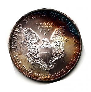 ASE's are actually highly prone to toning due to their almost pure silver content. That being said, it's always wise to retain a healthy skepticism when judging raw toned coins.
