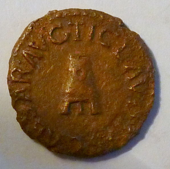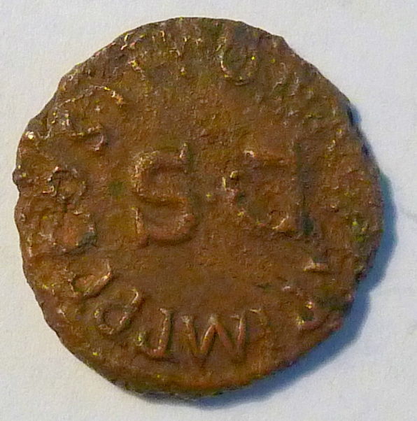 Now for the next coin! Keep in mind about low quality scanner photos. Claudius AE Quadrans. 41-54 AD, 3.6g, 17mm OBV: TI CLAVDIVS CAESAR AVG Around modius. REV: PON M TR P IMP COS DES IT around large S dot C. REF: RIC 84, Cohen 70. There it is. Sorry John Anthony, I'm going for RIC 84. I know it's hard to tell what the legend is at the top but I looked at it really closely in a photo and with a magnifying glass.