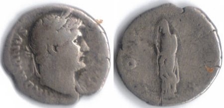 Sabina denarius. 117-238 AD, 2.0g, 16mm OBV: SABINA AVGVSTA, Diademed and draped bust right, hair in queue down neck. REV: IVNONI REGINAE, Juno standing left holding patera and sceptre. REF: RIC 395a, RSC 43, Sear (RCV 2000) 3921, BMC 940 This one is really low grade and will be upgraded at some point in the future.