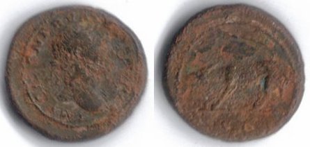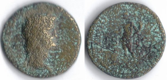 Nero. AD 54-68. AE As, Rome mint. 63 AD. 6.8g, 23.50mm OBV: NERO CLAVD CAESAR AVG GER P M TR P IMP PP, Laureate head right. REV: GENIO AVGVSTI, S-C across fields, I in exergue, Genius standing left, holding patera and cornucopiae, sacrificing over lighted altar to left. REF: RIC I 214; Sear 1977; WCN 269; BMC 252. This one here was barely identifiable to a RIC ID, took awhile too but I got it. Like I said, I know this is low-grade, but hey, I only paid $7 for it so I'm not complaining any at all. Wikipedia Copy and Paste
