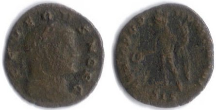Severus II Follis. Siscia, 306-307 AD, 1.7g, 18mm OBV: SEVERVS NOB C, Laureate head right. REV: GENIO POPVLI ROMANI, Genius standing left, modius on head, with chlamys over left shoulder, holding patera and cornucopiae; SIS in ex. REF: RIC 171a Yes, another low grade coin but kind of strange since the reverse design looks kind of lop-sided as it was engraved. Also, I'm getting closer to getting one of each ruler in the Tetrarchy era. The easiest and most common one left is Galeria Valeria. The others are as follows. Romulus - Son of Maxentius. Difficult, but not impossible. Impossible rulers: Domitius Domitianus - Need at least a grand. Alexander Tyrannus - Impossible Martinian - Impossible Wikipedia Copy and Paste.