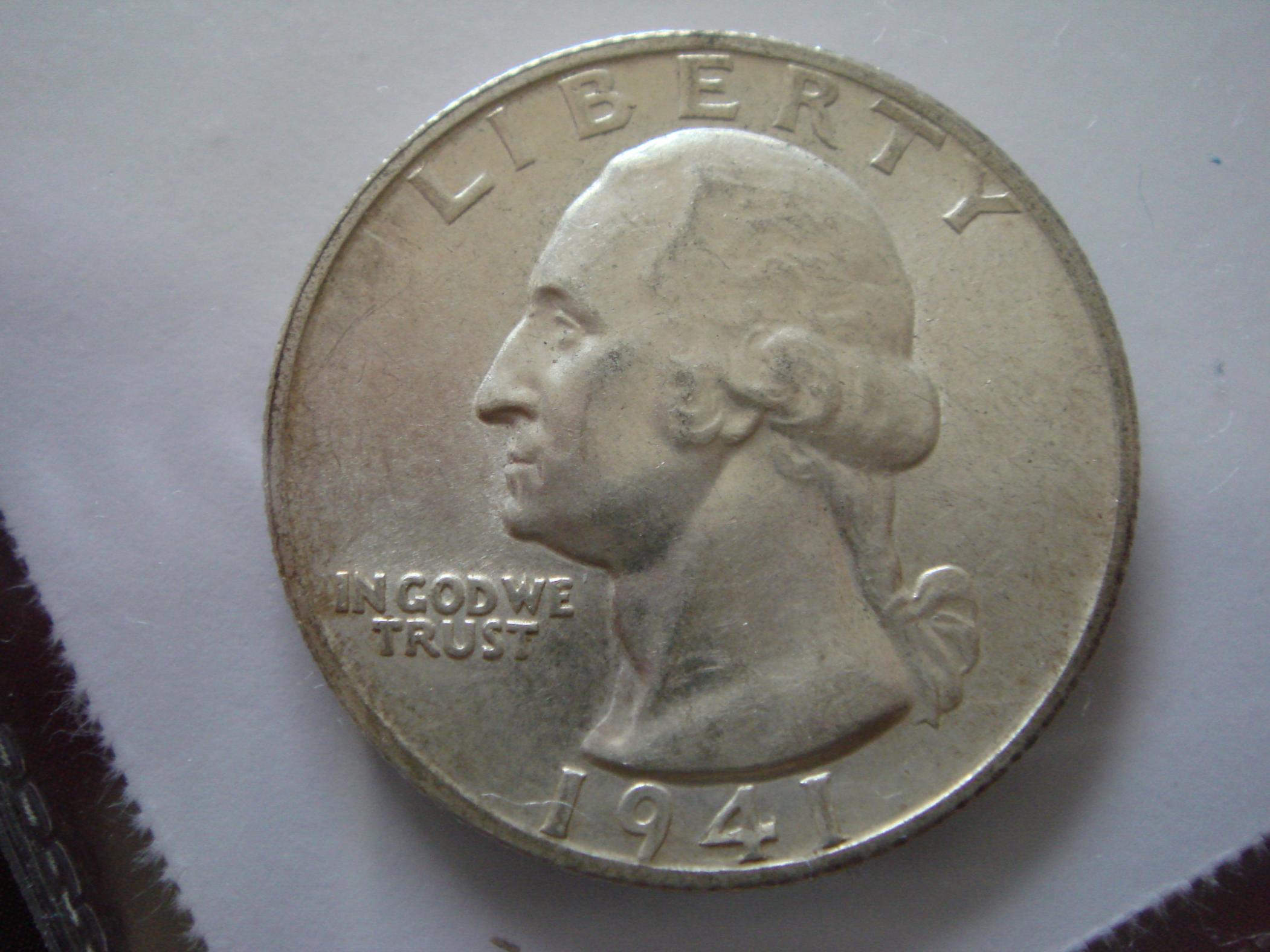 Assistance in grading 1941s quarters I have a few coins that I'm thinking about submitting for grading, and I'd like thoughts. I'll post the obverse first, and if any of them seem worthwhile (say, over MS62), then I'll post the reverse. The token is just thrown in to see how it would grade. I'm not planning to submit that, more trying to grasp token grading. Thanks! Also, if you need me to remove a coin from the flip for the reverse, I'll take a better obverse pic, too. I just don't see a point if the grade is clearly not MS62 or better in your collective opinions.