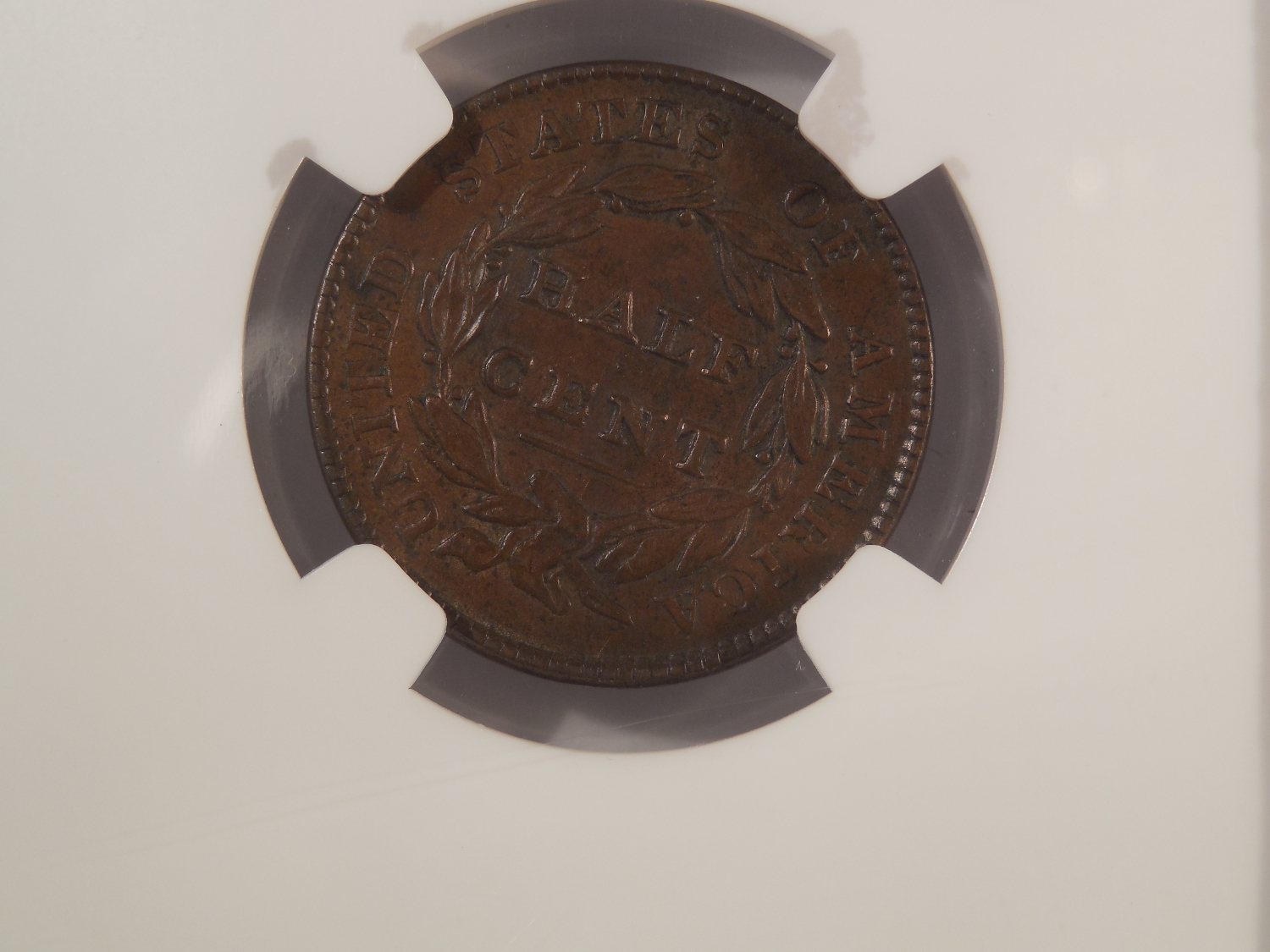 A couple weeks ago I bought the shield nickel in my avatar from him. The half cent came up again. He then showed me a toned half cent that had iridescent blues and greens with areas of the original red copper showing. Truly a magnificent coin for eye appeal. So much so I didn't even get a date. There was no way you could turn the coin the toning did not show. It wasn't for sale.