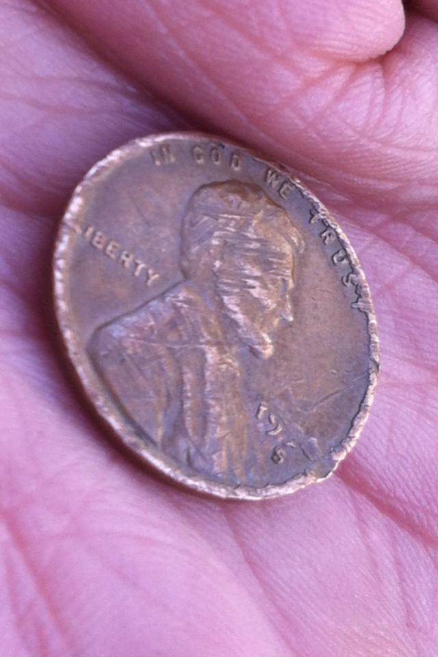 Well thank you, I appreciate the info, especially since I'm just learning about coins. But I do have another question for you... Can you even make out what the year is on the "wheat" penny? Also, let's just say the penny was not damaged and we knew what date it was (it looks like 19*4 -- can't really make out the 3rd number), what would the value have been, given the "S" looks, and please correct me if I'm wrong, like its "double struck"??? Thanks.