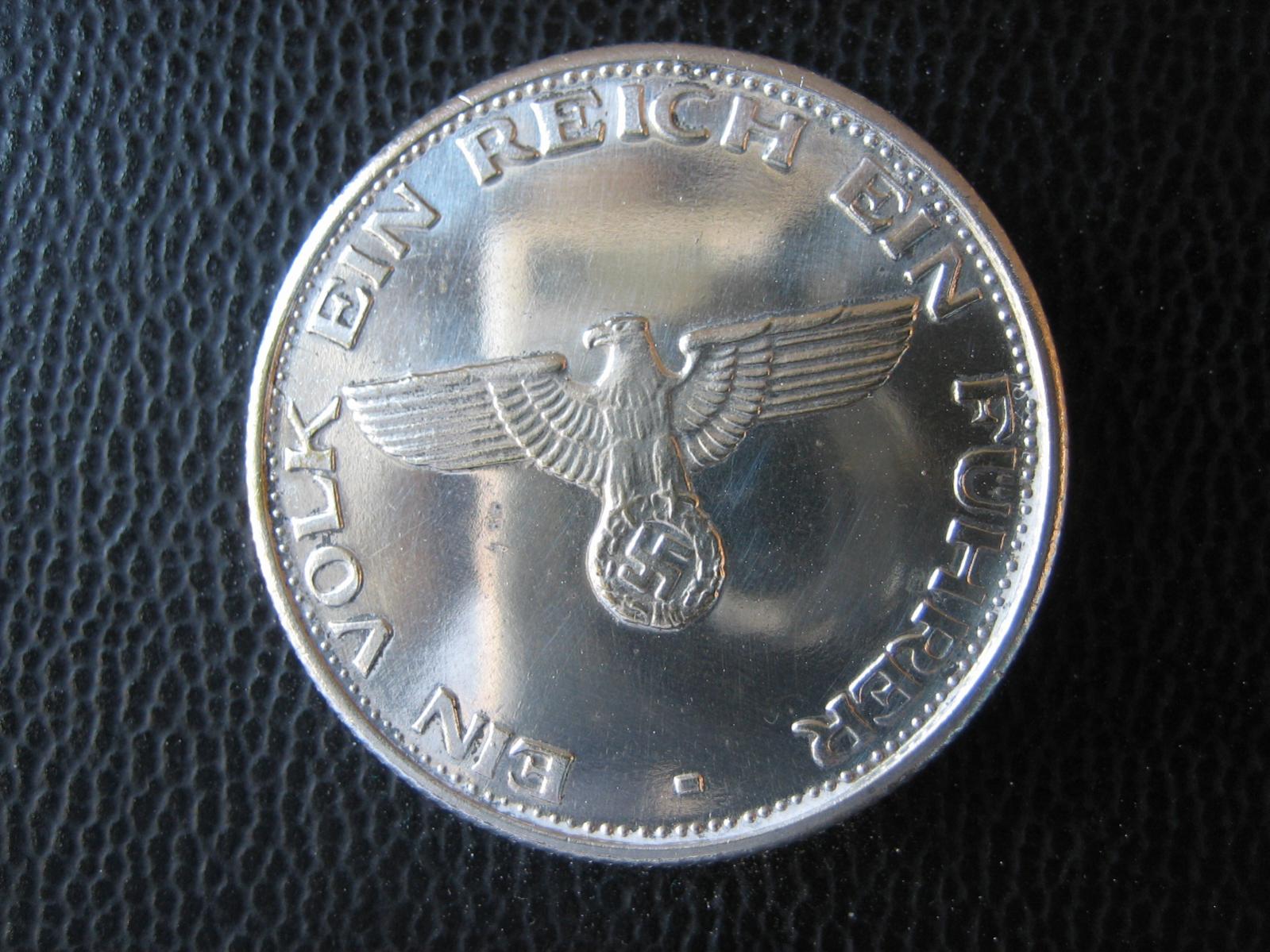 I have an immediate post war German coin made with the same dies used by the Nazis, but with the swastika polished away. The end of the war as told by one bit of zinc.