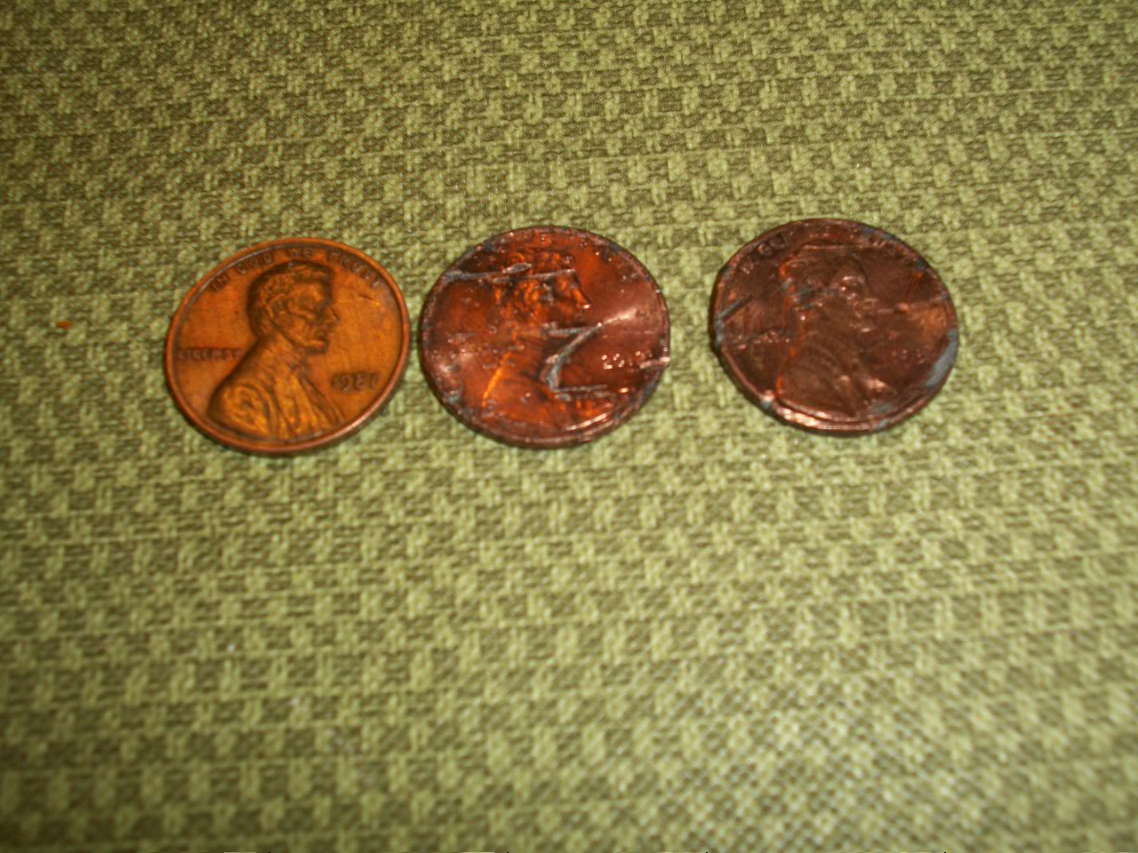 Welcome! Coins #2 and 3 in the first picture are post-mint damage...coin 1 appears to have an improperly mixed alloy, or "woodie" error as it gives it a woodgrain appearance.
