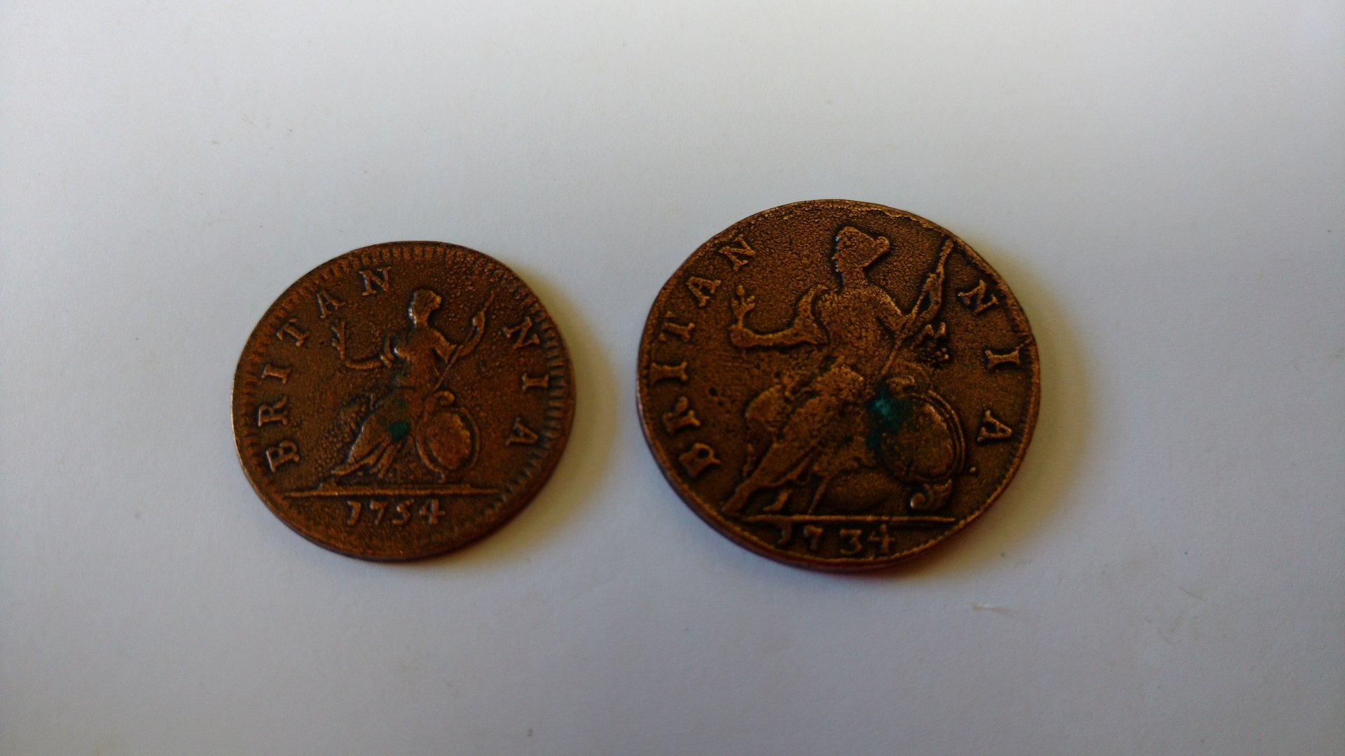 I'm having trouble believing that they're real though. The fields, especially on the Britannia side look like a fake coin to me. With that said, back in the 1700's coins were crudely made so they may be real. Yes, better pics may help.