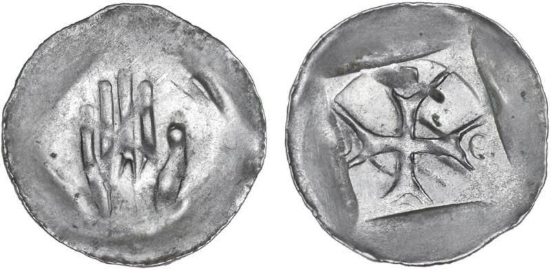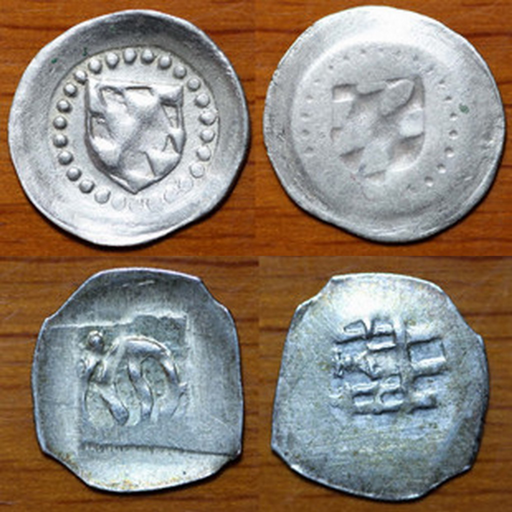 2 small hammered coins. Above one, weight 0.48g, diameter 16.5mm. Below one, weight 0.36g, diameter 13.8mm. Are they German coins? And their time? Thanks!
