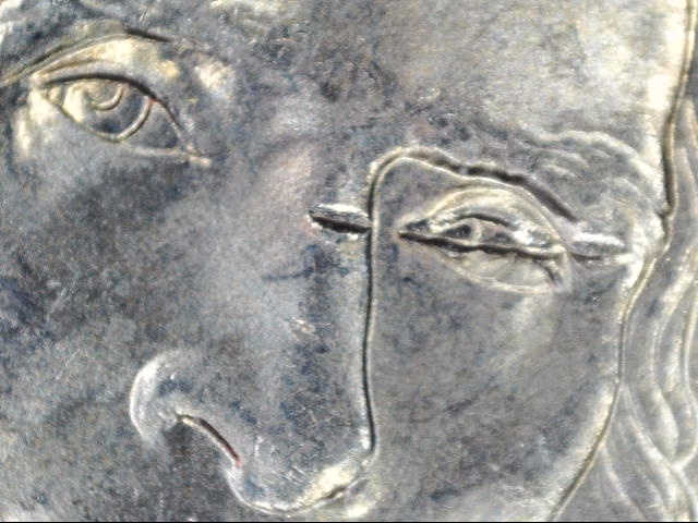Sorry, to say the "as you say" recessed areas across the nose and eye are exactly that. Very well placed bag marks, Thanks for the great pics! LOL, could be a strike thru though. It certainly looked like it before coffee this morning. Actually, Thanks for taking a honest Pic.