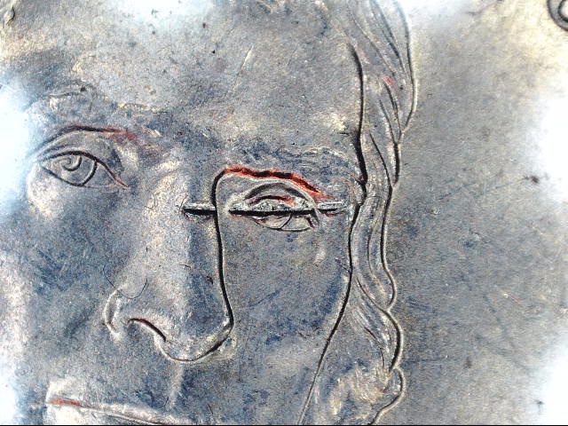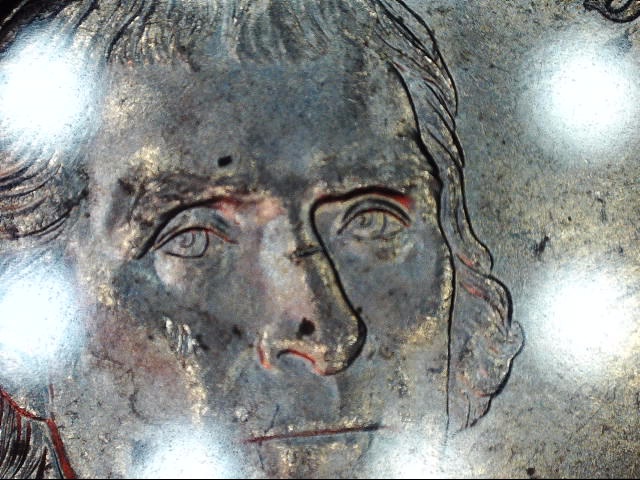 First have been in this hobby maybe a month now so tolerate me please. Second it is the first time I have used this microscope/camera, so once again please tolerate my mistakes. I picked up several sealed boxes of nickels from the bank 2 weeks ago and found these. The coin with the nastiest gash was the first ... studied it a bit and tossed it into the returns box figured it just had a hard life; about half a dozen rolls later found the second. Saw the little gash on the nose and it looked familiar. (All the rolls were mixed coinage, no Unc. rolls at all.) So dug through the return box and found the first. The camera I purchased has cross hairs in the middle of the viewing screen so I can line things up if I need too; I lined the smallest of the gashes up with the far part of the eye then projected that to he second gash and they appear to be the same, as the gash across the nose appears to be the same as the gash on the nose of both. Hope that makes sense. Now could it be that by some fluke, I captured a die coming apart? Being that they came from different rolls of mixed coins is this that unusual? I need some expert eyes and opinions please. And if it is a die coming apart, what it be called, certainly not "a gash" ? And if so I guess the chances of this happening again, and how it came about would be one in the national debt.