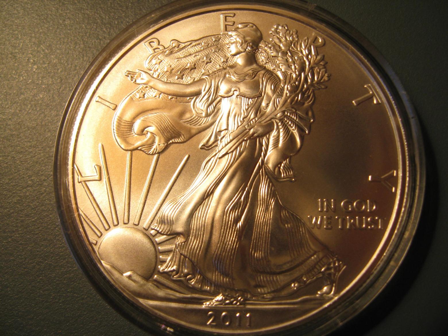 I bought this 2011 ASE and it comes in the mail in this airtight holder and i was wondering if it would grade high enough to be considered worth more than spot price. Took some pics of what could be considered problem spots under 10x magnification because its very hard to see with naked eye.