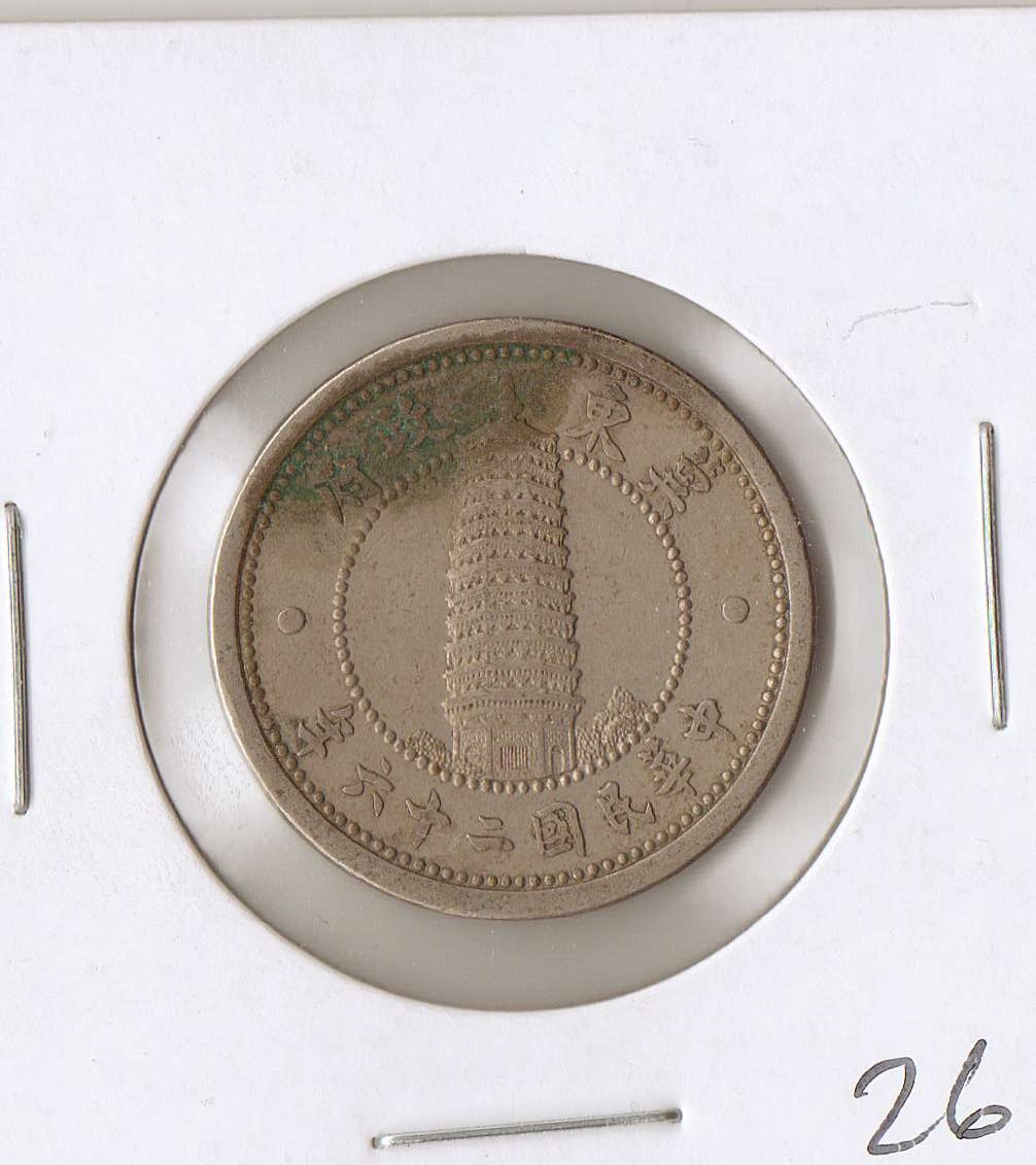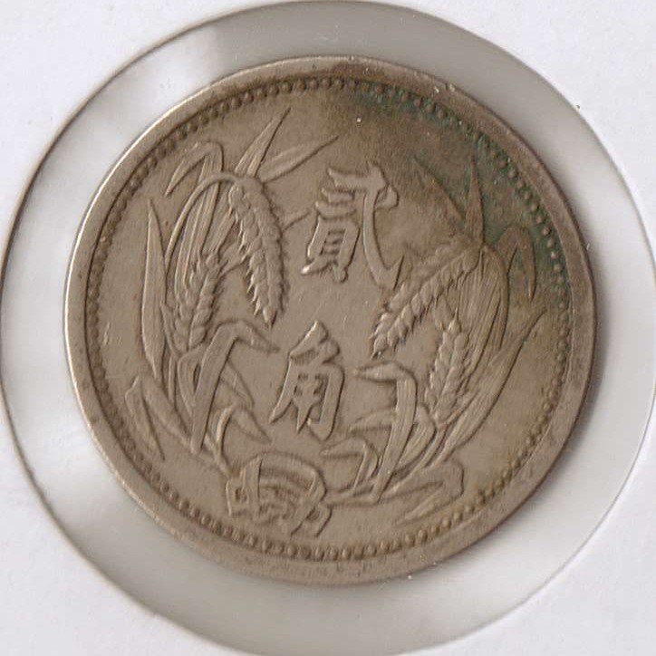 You have a real item from history there. Hopei, China (Japanese WW2 puppet state) 1937 2 Chiao (20 cents)