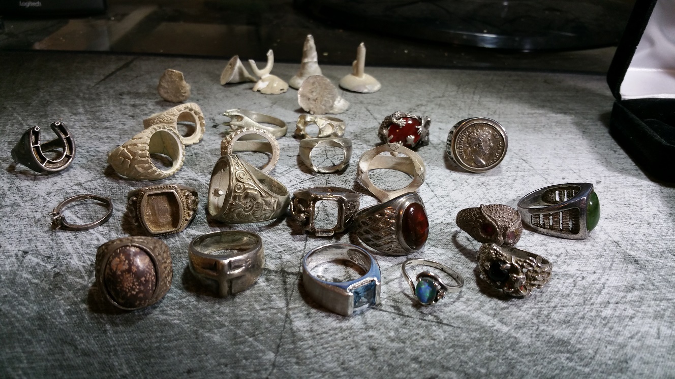 I used to make jewelry, but since I no longer have lapidary equipment, I simply buy fine jewelry for the Misses (I seem to like the rings more than she does, of the 100+, she probably wears 5-10 of them. Here are a few I've made or was in the process of making (I didn't make the Marcus Aurelius, but isn't he nice looking?))