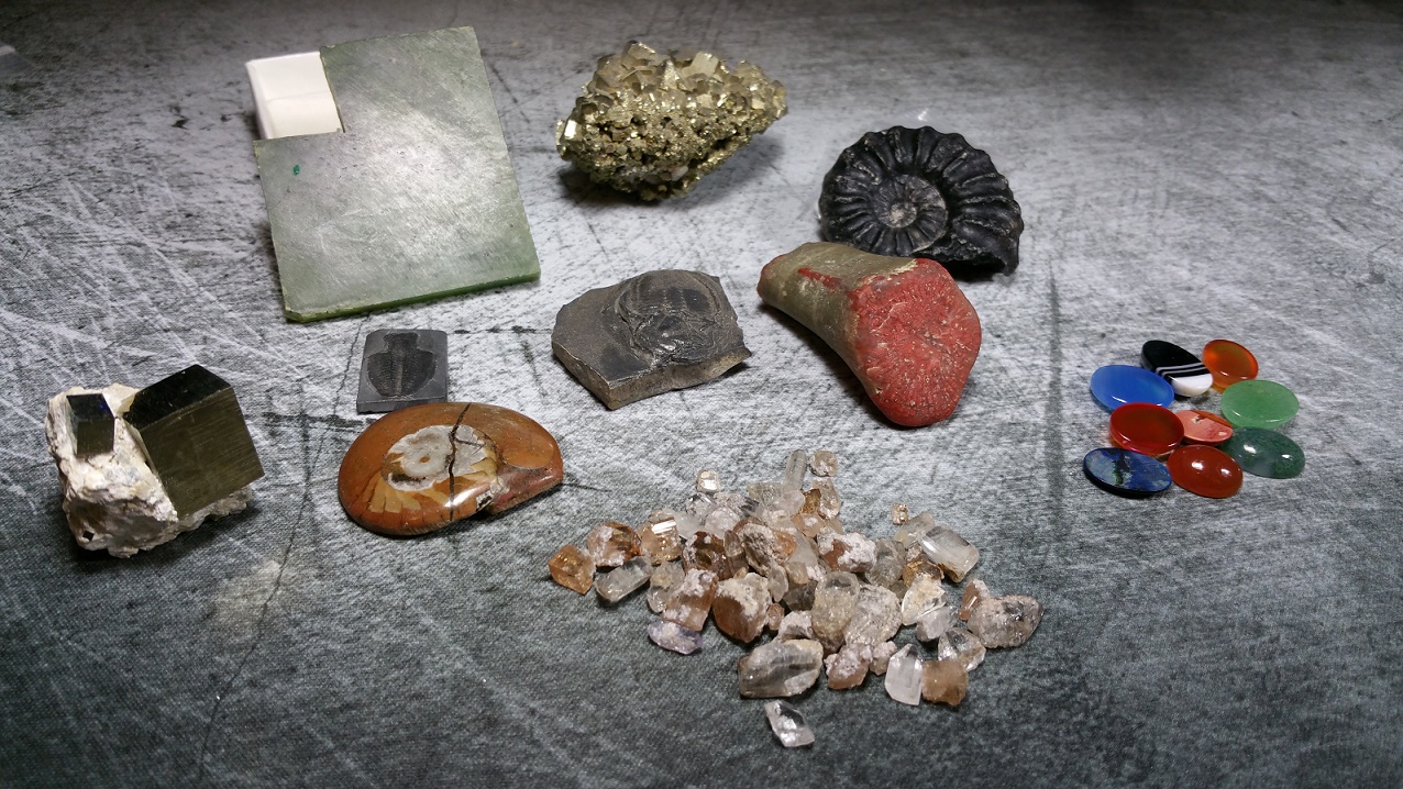 I collect minerals and fossils. These are a few I had laying around. I made the cabochons to the right.