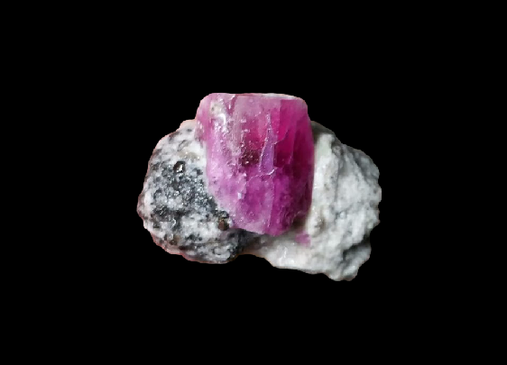 Small piece of red beryl (bixbite) in the matrix with black quartz that I carry with me daily.