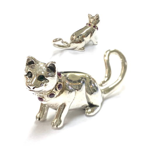 I bought with Christmas money this sterling silver cat with emerald eyes and ruby collar for my cat figurine collection...